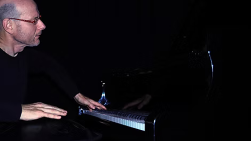 Piano-Drums Sounds mit Holger Mantey. Musik von Mozart bis Gershwin, Bach bis Bonanza, gespielt auf Trommeln, Handpans, Akkordbrettern, Kastagnetten, Klavier u.a.